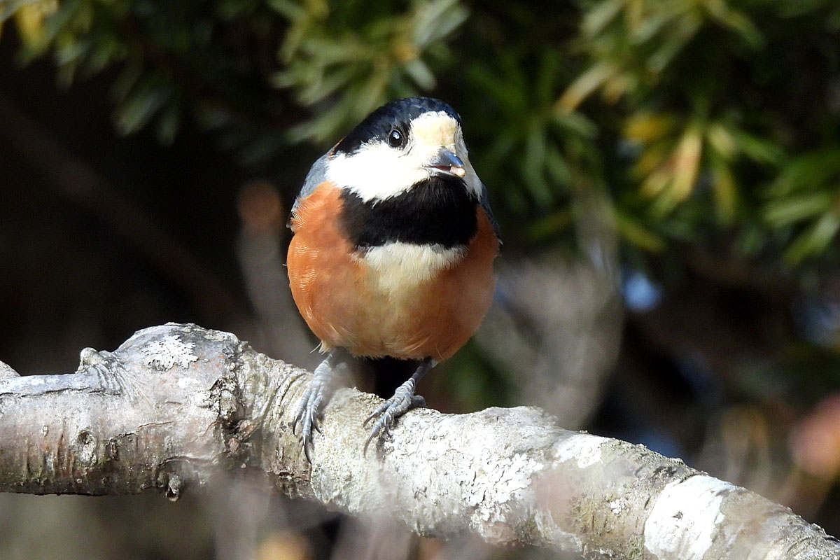 ![]() 陽が出て雪が融けると庭木にやって来るヤマガラ。 |