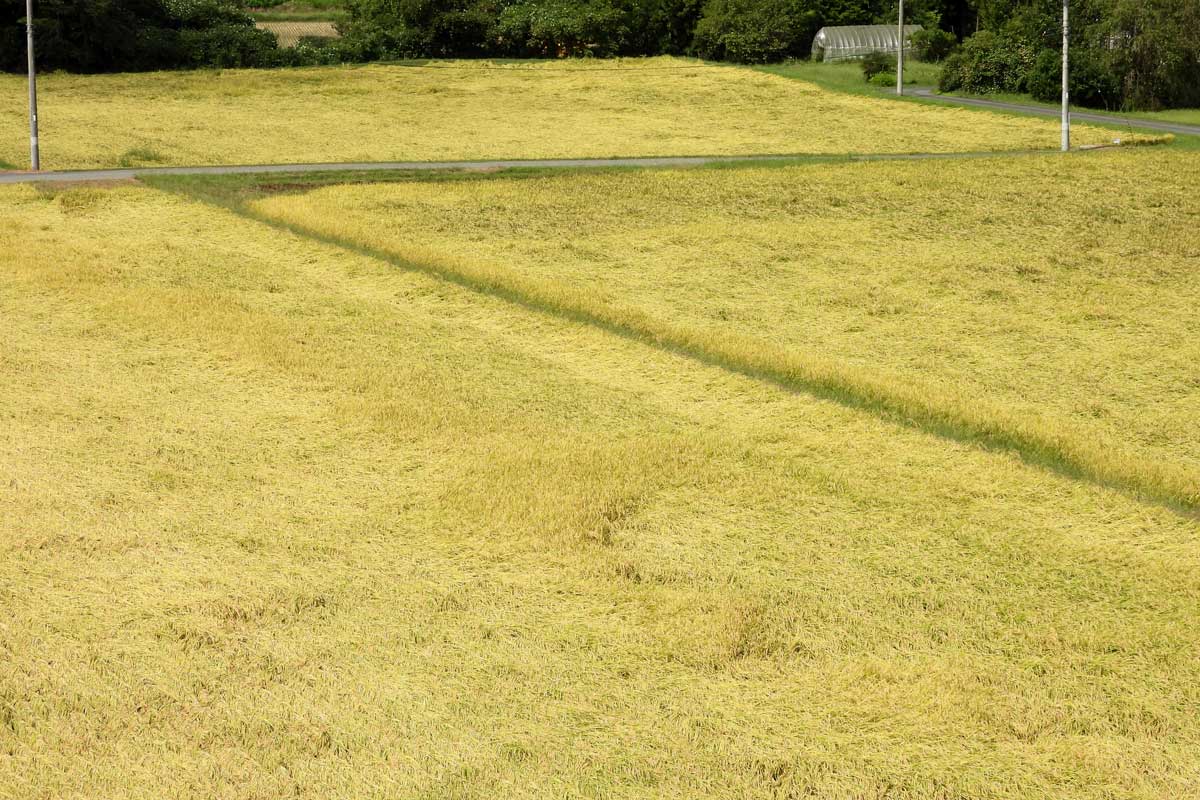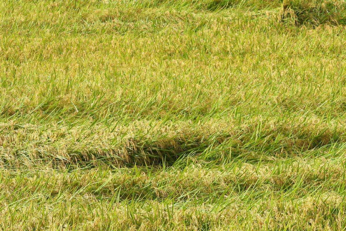 ![]() 稲の倒伏が目立つ!それにしてもこれは酷い。 |