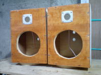 木楽庵の音楽環境は当初のCDラジカセがディスクは読まなくなりカセットもREWボタンが戻らず、そうなってからはもっぱらラジオだけがBGMソースになっていたが、この冬オークションで仕入れた車載用CD&カセットステレオがメインシステムとなってからはディスクソースもカセットソースも快調で結構な出力が得られる。電源も12Vと直接バッテリー駆動が可能になり、インバータも通さずロスが少なく重宝している。ただスピーカーがねぇ。。。手持ちとして有った16cmのユニットを2個コロンとつないでいるだけなものだから、音としては低域がまったく無くてラジカセにも劣る代物なのだ。 まぁそれでもラジオなら音楽のみを聞くわけじゃなくてニュースやらDJののトークを聞く分には大して不自由はないがやはり音楽はねぇ。。。いっその事どうせ山の中、周囲数百m以内に隣家はなく騒音の迷惑もないので、壁を平面バッフルに見立て小屋自体をスピーカーボックス化しようかとも思ったが、以降の自由度が無いのでやっぱり専用箱だなぁ。。。 と感じていて、丁度この季節、雨交じりの日も続き、先月のリフォームで出た端材も多少ある。ま、直近はいま聞いているジャンクめいた裸のスピーカーを入れる箱を作るだけなのだけれど、どうせなら後々ユニットをちゃんとしたものに替えてもみたい。 今まで自作スピーカーはそれなりに作ってきた経験はあって、その数は10本は越えているはずだが、大方は意外と「これはいい!」という音はしないものでガッカリが多い。もっとも結構キワモノ的な箱やらシステムだったりしたせいもあるが、その中で今も聞いているプロジェクターと合わせたオーディオ/シアターのメインスピーカーも30年ものながら、当時主流だったLow30cm/Mid12cm/High5cmの3ウェイのもので、これだけは我ながら落ち着いた音で今だに使えている。いわばMyオーディオ史の中のリファレンスになっている。 その箱はある部分、偶然辿り着いた音のバランスみたいなもので、最近の音からすれば少し締りの少ないぼんやりした音でもある。今回はちゃんとした設計で作ってみようと、かのオーディオ評論のカリスマ長岡鉄男氏の遺作となった箱を試してみる事とした。 氏についてはWikipediaの説明が的を得ていると思うので、そちらを見られるといい。今回作ってみることにしたのは密閉型に近い16cm用2 ウェイのコンパクトなものだ。理由は何と言っても「簡単そうだ」ったから。が一番だが氏得意のバックロードホーンとか共鳴管タイプは工作の難易度もあるが、自分がつくってきた中ではムズカシイ。あまり良かった記憶がない。適正ユニットの選択も、ホーンの最適化も結構手間がかかるものだと認識している。 まぁ、いままで作ってあんまり上手く行ったためしがないのも、材料の制約とか思い込みで推奨寸法は寸法として大分逸脱したものとか、あまり設計値に忠実な作りをしなかったせいかもしれない。