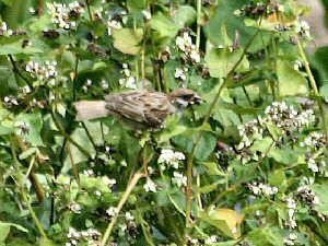 この畑の蕎麦の花は今が盛り。本来はコスモスの季節と良く合うが |