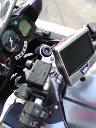 @Lアングルをスプリングで浮かし 取付けボルトで締める。 ⇒70Km/h付近でData飛び。 A汎用ブラケットを@のアングルを介して取付け ⇒無線機併設の為だったが、 ユラユラし視界/Data飛びも悪化。 B現状。木製ブラケットをリジットに固定。 本体はスポンジクッションでフローティング! 100Km/h迄はData飛びせず!Good!! 限界は未確認 |