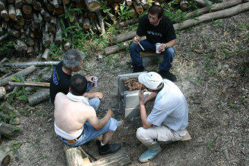 ![]() 突然「旬」のオーナーがいつも湿っている場所をユンボで掘りだした。 2mほどの深さに掘り下げた穴に湧いた水がたまってきた。 ポンコツユンボは足腰が弱い。外れたキャタもメカ好きが集まれば簡単そうにはめてしまう。 これが一人だとつらいんだよねぇ。。 日中は暑すぎるので伐り倒した木の枝焼きは最近はまとめて夜に焚く。パイプ車庫もすだれがあると結構涼しい。 |