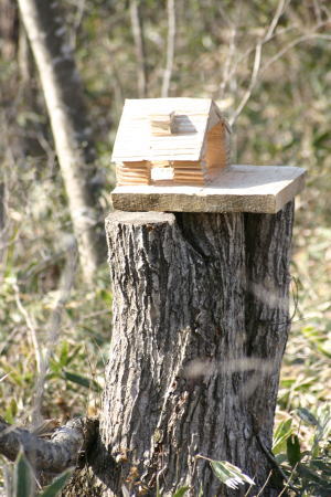 作業道として伐採予定の木の上で巣作り中の鳥がいた。「エナガ」!?なのだろうか、よく分からないが盛んに材料を運び、完成に近いようだ。う〜ん巣立ち時期までこの木は伐れないなぁ。。。