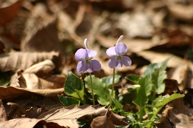 積もった枯葉の隙間からは野のスミレが方々に姿を見せている。