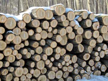 積上げたホダ木には伐った週毎に木口・・端面にナンバーで区分け。