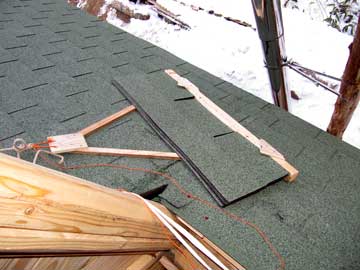 屋根材のアスファルトシングルは6枚か8枚位づつシングルセメントを塗って、特製キャリア(苦笑)の載せて屋根葺き作業をしている。この傾斜では1枚1kg以上あるので一気に運べない。 アスファルトシングル1枚につき2本づつ固定用専用釘で留めている。垂木に沿って打ち付けているつもりなのだが、スコンと釘が入るときはやはり垂木から逸れている・・・まぁ間伐材の細い木を太鼓に挽いたものだし結構曲がりがあるからねぇ・・・ ・・・なんて自分で言い訳をしつつ。 最近、朝ヤカンで湯を沸かそうとペットボトルの飲料水を動かすと、それまで普通の水に見えていたものがサクサクと凍ってしまう。 マイナス2〜5℃辺りに朝の気温があるとそんな現象が見える。過冷却水状態にあるんだそうだ。 それにしても先シーズン、この現象が出始めたのは年が明けてからだったような気がするが・・・今年は去年より寒いのかな!? |