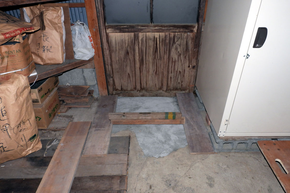 ![]() 「倉庫」というと聞こえは良いが築50年弱、亡父手作りの「物置」。 |