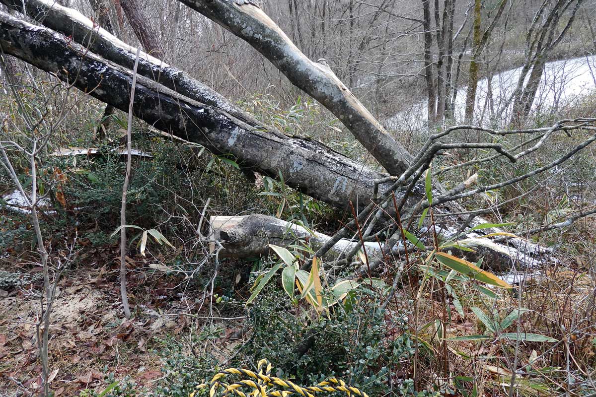 強風で倒れたコシアブラ。そろそろ薪材として伐り出す!